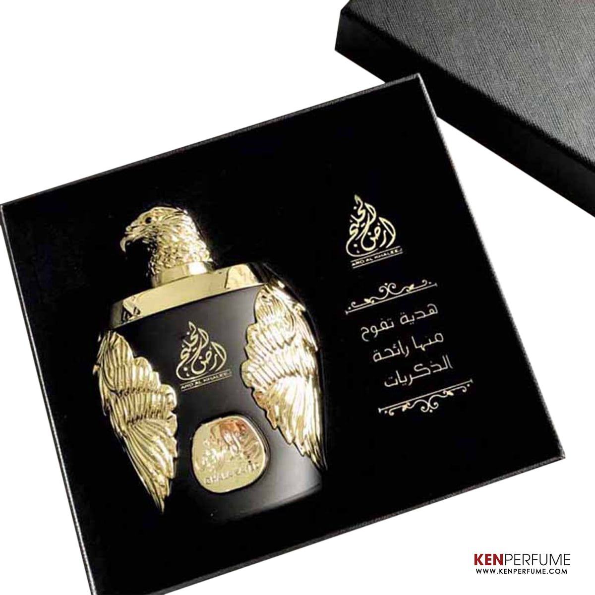 GhalaZayed Luxury Gold với thiết kế hình con đại bàng đen và mùi hương dứa nướng quyện hương khói toát lên vẻ nam tính quý tộc, được ví von là tinh hoa mỹ phẩm của các tiểu vương quốc Ả Rập, thuộc nhóm nước hoa Oriental Vanilla hay còn gọi là Hương vani Phương Đông. Cùng với đó, nếu bạn là một người sành nước hoa hẳn sẽ nhận ra hương cây hoắc hương và hương rêu sồi khi sử dụng.