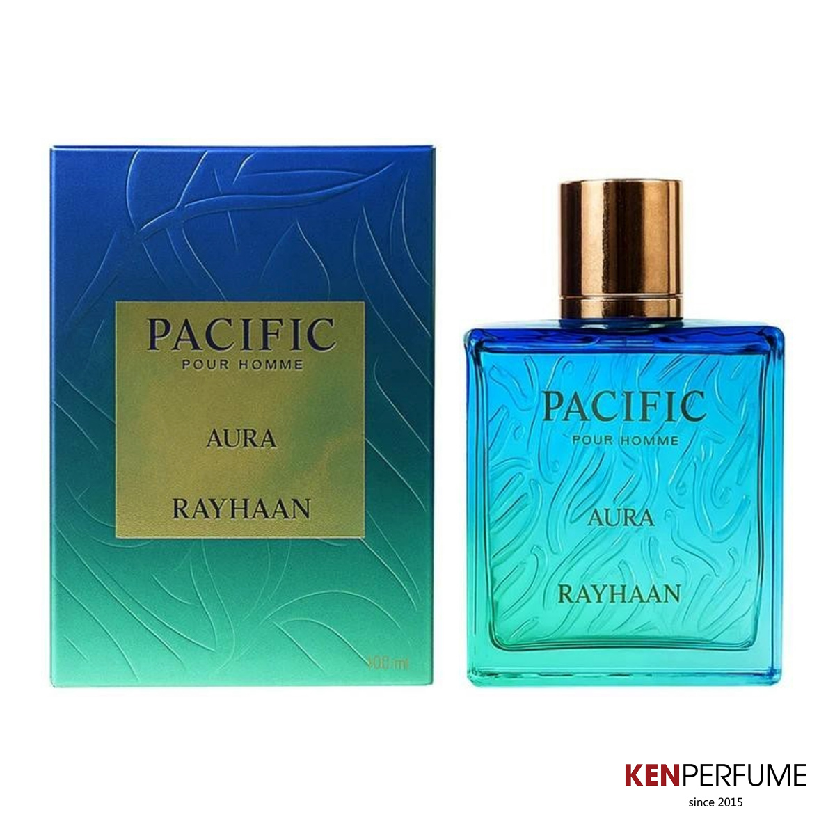 Pacific Aura Rayhaan là sự kết tinh của tinh thần tự do và cảm giác thanh sạch. Một mùi hương đại diện cho làn gió biển mát lành, chạm vào vùng ký ức mùa hè bất tận – nơi mặt trời vàng óng soi bóng trên mặt nước trong xanh, và từng làn gió lướt qua mang theo mùi thảo mộc, trái cây và gỗ nhẹ nhàng.