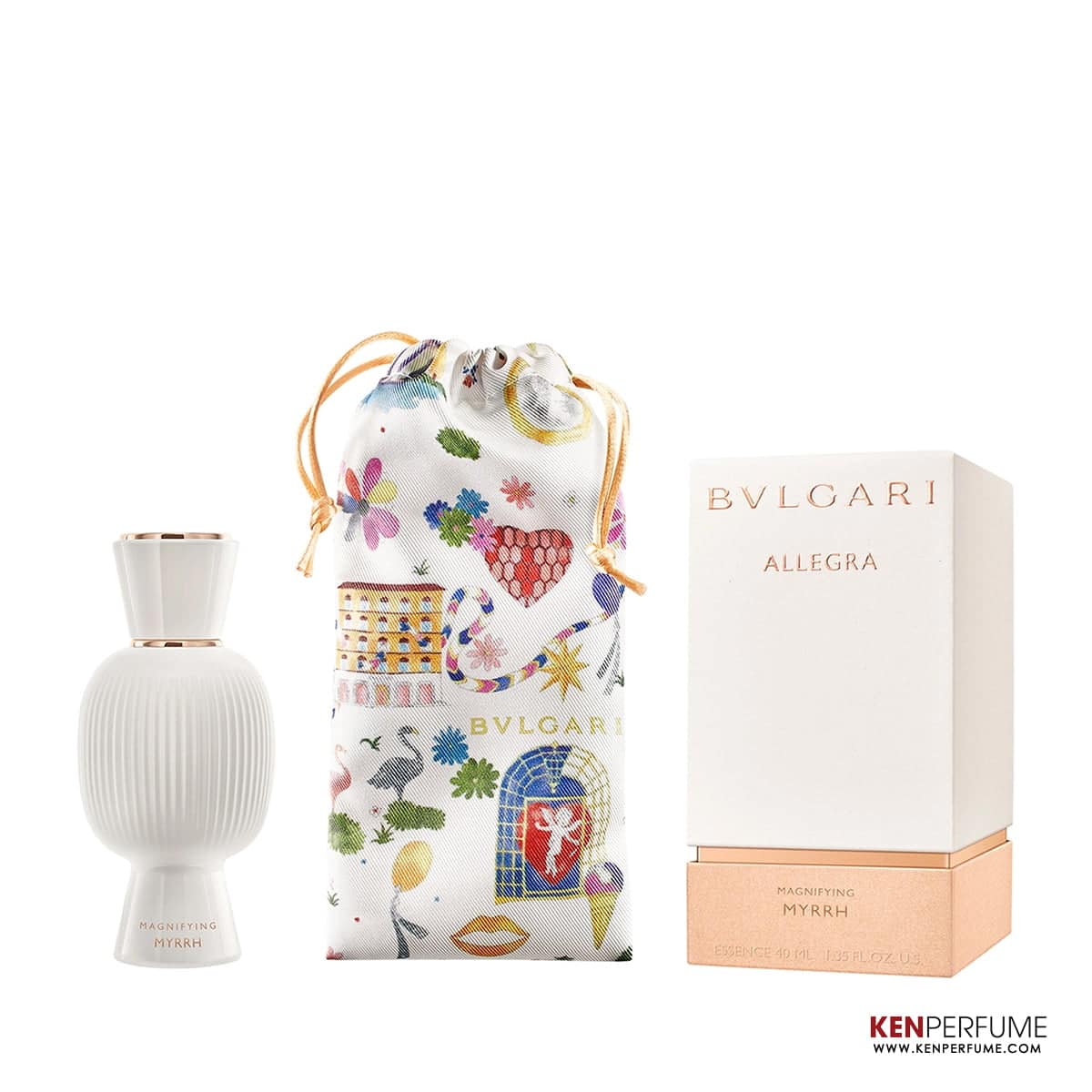 Lần đầu tiên sau hơn 15 năm, Bvlgari ra mắt dòng nước hoa cao cấp thành công cả về thiết kế, ý tưởng và hương thơm. Cùng với bảy loại nước hoa tôn vinh tinh thần của La Mã cổ đại và phong cách tiên phong của Ý, Bvlgari còn giới thiệu một bộ sưu tập hương hoàn toàn trắng mang tên Magnifying. Đây là 6 loại tinh chất chứa hàm lượng nguyên liệu quý giá được chưng cất từ những vụ mùa bội thu, với mục tiêu trở thành loại nước hoa kết hợp hài hòa với bất kỳ mùi hương nào trong bộ sưu tập năm mùi hương. Bvlgari Allegra Magnifying Myrrh Essence mang mùi hương chính từ nồng độ eau de parfum.