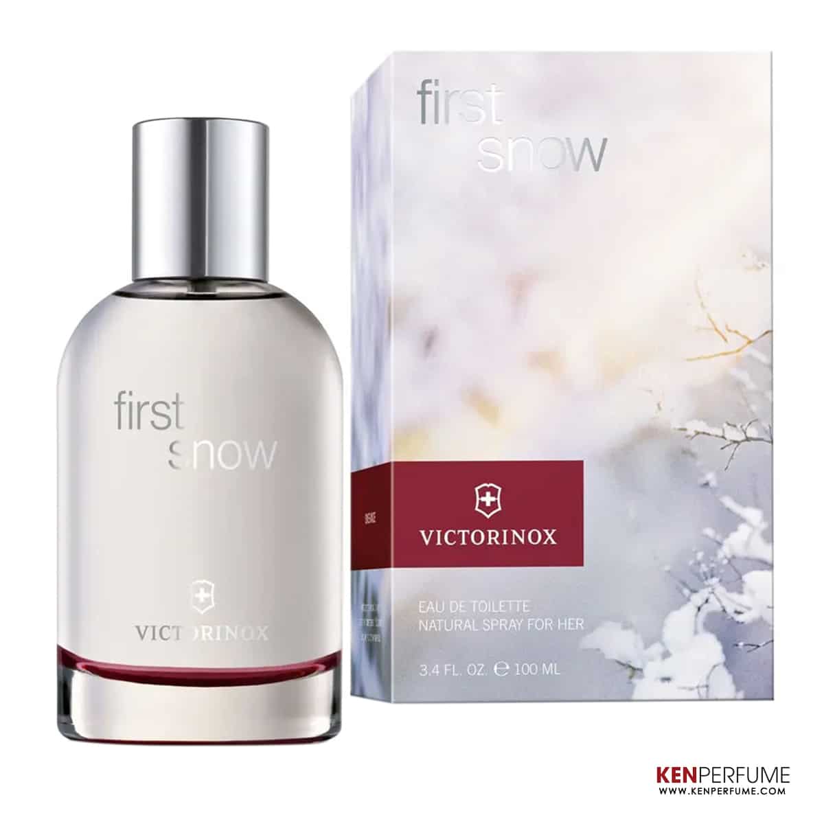 Victorinox Fragrances First Snow ra mắt với hương thơm tươi mát, sạch sẽ của trà trắng lấp lánh đan xen với những điểm nhấn êm dịu, băng giá của bạch đàn. Hương sinh học vani phong phú và tinh chất cam tinh tế được bộc lộ ở phần trung tâm mềm mại, gợi cảm của nước hoa nữ. Khi khô đi, lớp hương nền đầy đặn tuyệt đẹp của xạ hương trắng kem và đậu tonka đọng lại một cách bí ẩn.