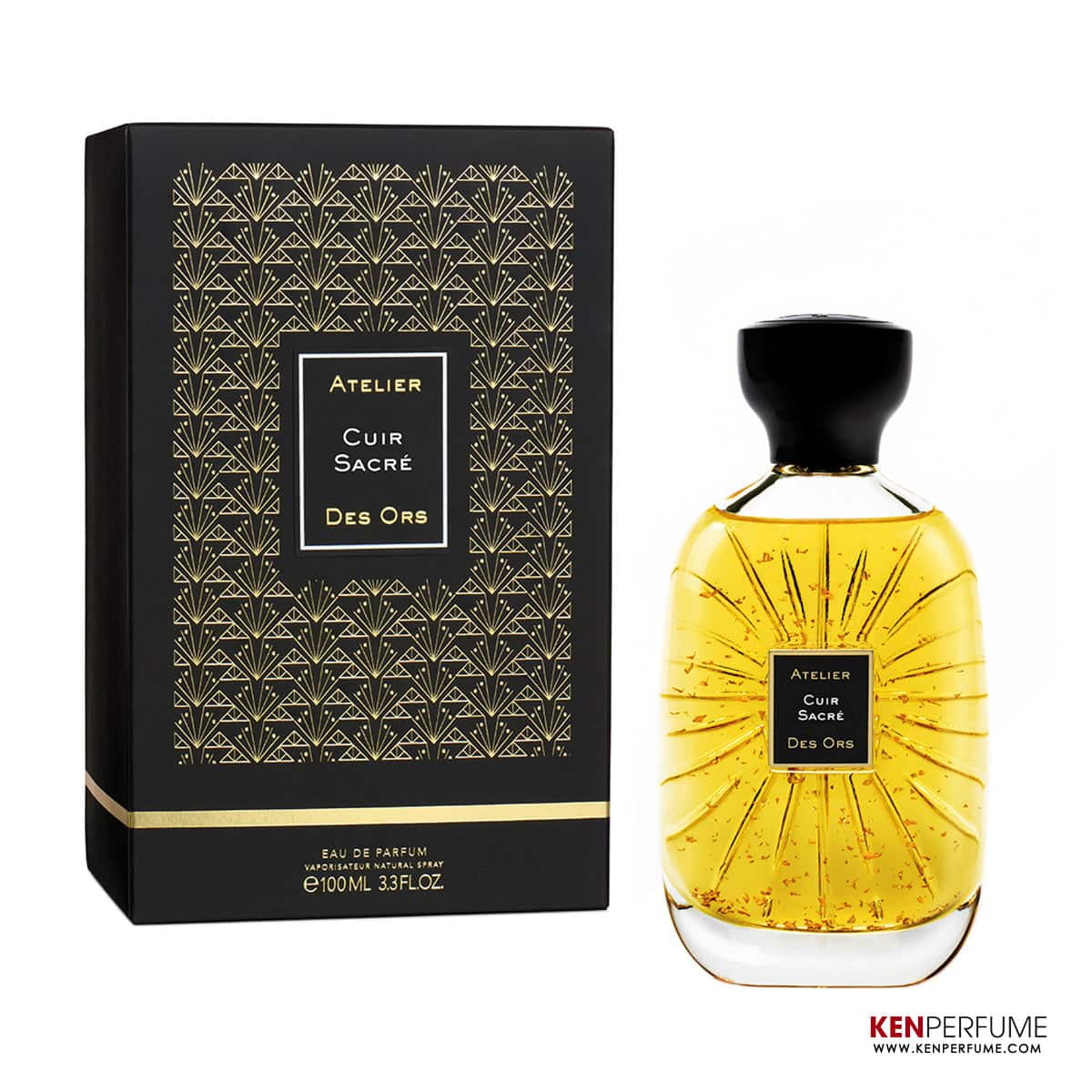 Với thiết kế đơn giản, tuyệt đẹp nhưng không kém phần tinh tế, chai nước hoa Atelier Des Ors Cuir Sacre thủy tinh chứa đựng chất lỏng vàng đượm cùng những lá vàng “bay” lấp lánh đã gây chú ý đặc biệt ngay từ phút đầu khi nhìn thấy. Hình thức Cuir Sacre EDP toả sáng song hành cùng hương thơm sống động và giàu cảm hứng.