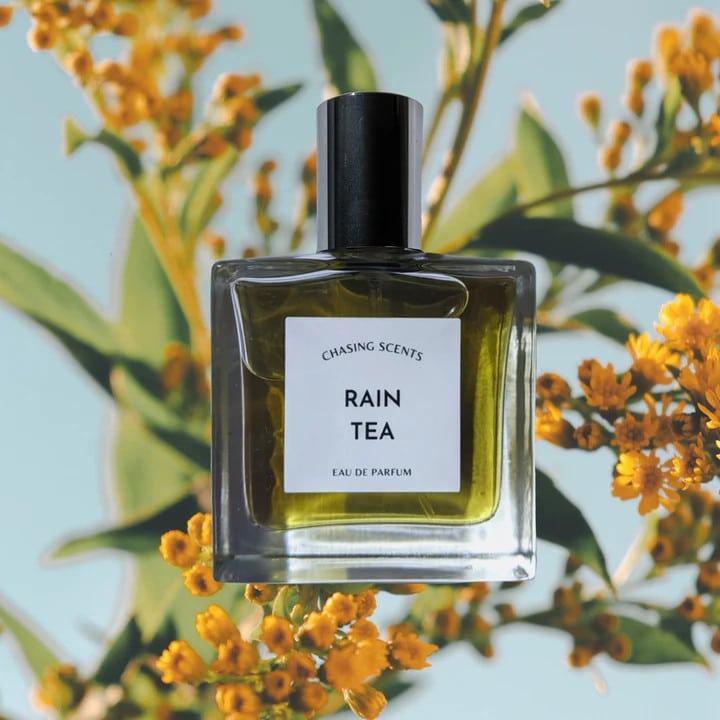 Nước hoa Chasing Scents Rain Tea là tác phẩm mới nhất từ nhà hương với danh xưng “Real Tea Perfume”. Rain Tea vẽ lại cảnh bàn trà giữa hai người đối ẩm, vào một buổi chiều mưa lất phất nhẹ. Dưới gốc cây mộc lan, có trà có bạn có hoa. Hương thảo mộc phảng phất từ ấm trà hoa cúc, ấm nóng thơm lựng lan toả trong không trung, ngọt thanh mật ong hoà thêm vị long nhãn nhấn nhá, khiến ấm trà hoa cúc càng trở nên đượm vị Á Đông. Cảnh tượng bình dị mà nên thơ, dành cho những tâm hồn hỷ lạc, không sôi động ồn ào mà hướng đến cảnh bình yên. Là vị trà hương hoạ tâm tĩnh.