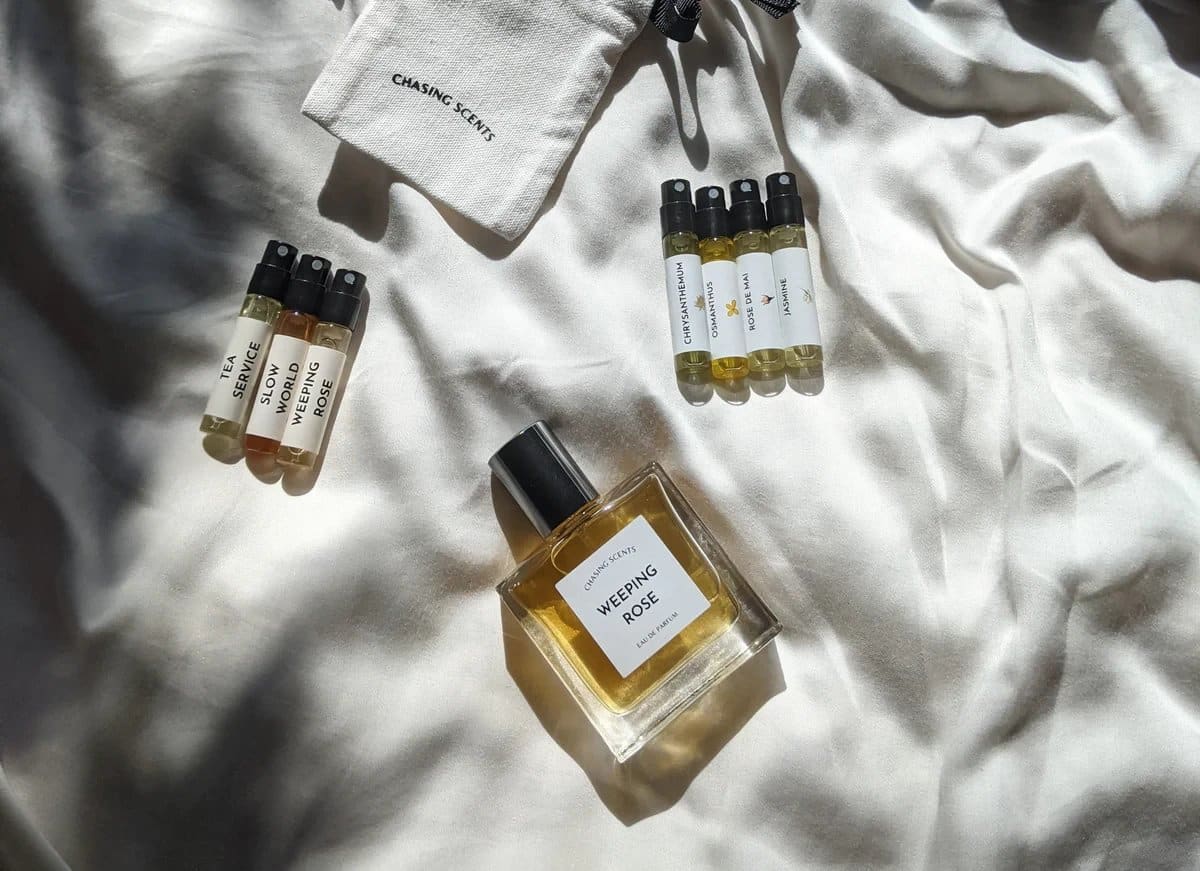 Chasing Scents Weeping Rose ngửi yên bình như những cái ôm ấm áp, những buổi đi dạo bình yên trong hoàng hôn, đây là chai nước hoa sau cùng của Chasing Scents mà Ken Perfume thả hồn vào để cảm nhận và trân trọng. Nếu bạn kiếm tìm một tách trà tươi đậm, hãy chọn Tea Service. Nếu chọn trà của sự ấm áp, ngọt ngào và quyến luyến, hãy tìm đến Slow World. Còn nếu muốn thứ gì có thể chữa lành tâm hồn, hãy chọn Weeping Rose.