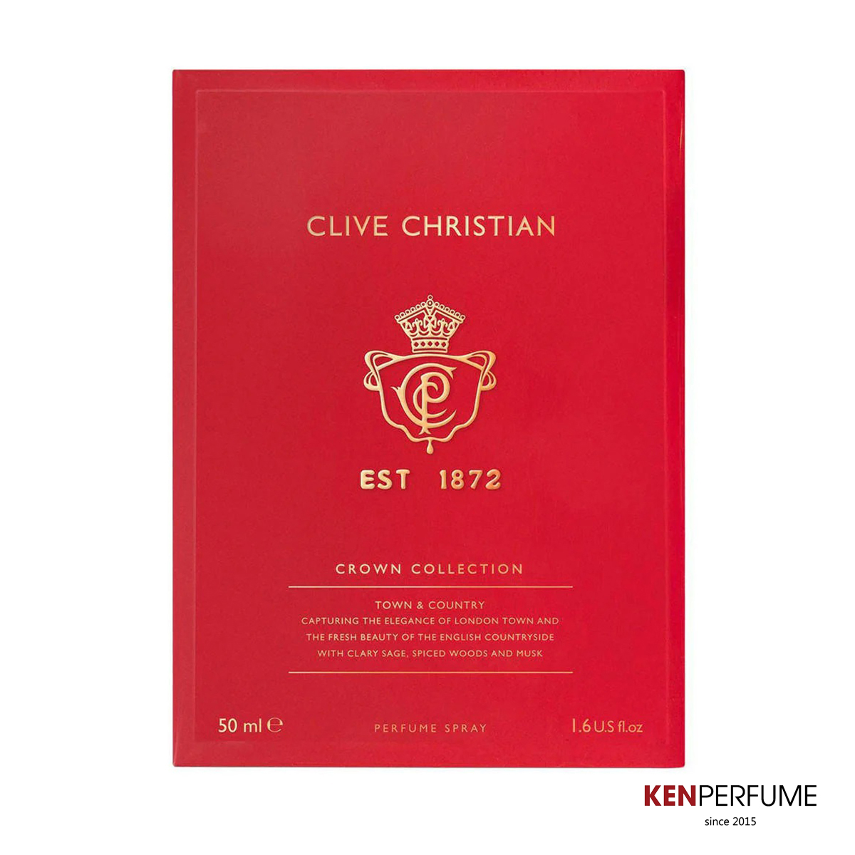 Clive Christian Town & Country sở hữu thiết kế chuẩn phong cách Anh quốc: nắp chai hình vương miện hoàng gia, thân chai thủy tinh dày, sơn màu cổ điển, nhãn chai được dập nổi sắc sảo. Phong cách đóng gói xa xỉ, đi kèm hộp gỗ cao cấp, khiến đây không chỉ là nước hoa, mà còn là món quà tặng xứng tầm, hoặc một vật phẩm sưu tầm đáng giá cho người yêu hương thơm.