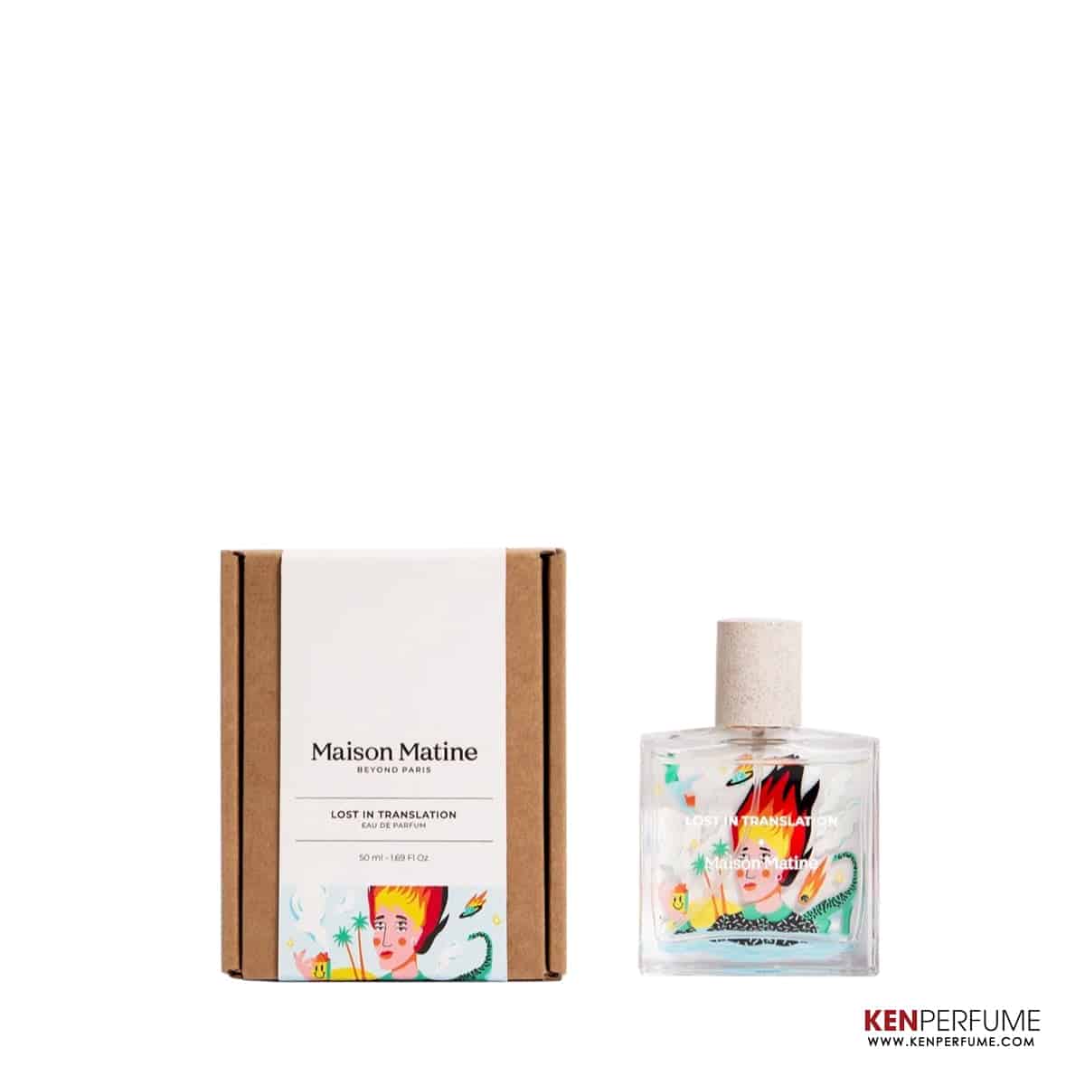 Nước hoa Maison Matine Lost in Translation là một loại nước hoa Woody Aquatic dành cho phụ nữ và nam giới. Đó là một loại nước hoa mới. Lost In Translation được ra mắt vào năm 2021. Người tạo ra mùi hương này là Laurent Marrone. Hương đầu là lá violet, cây bách xù và hương nước; hương giữa là gỗ hồng sắc, trà trắng và hạt tiêu đen; hương cuối là da, hoắc hương, xạ hương, thuốc lá và gỗ khô.. Maison Matine là một nhà nước hoa Niche làm hương tới từ Pháp ra đời vào năm 2019, hướng tới đối tượng khách hàng mục tiêu là Gen Z. Marie Kellou and Arthur Ponroy, hai Founders của nhà nước hoa này có khẳng định rằng các sản phẩm của hãng hướng tới đối tượng khách hàng mục tiêu là thế hệ những người trẻ không bị ràng buộc bởi những luật lệ, những người luôn luôn tìm kiếm cho mình sự tự do.