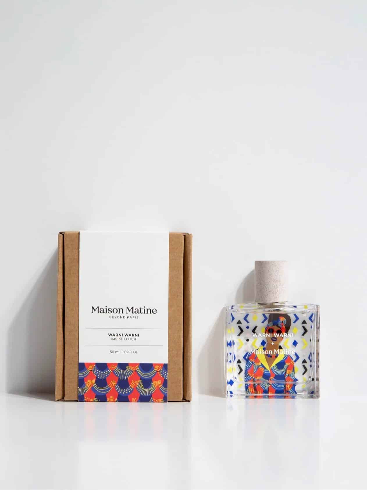 Maison Matine Warni Warni là một loại nước hoa hương Cỏ – Gỗ – Xạ Hương dành cho phụ nữ và nam giới. Warni Warni được ra mắt vào năm 2019. Người tạo ra mùi hương này là Elise Benat. Hương đầu là trà và bạch đậu khấu; hương giữa là hoa cam và lan Nam Phi; hương cơ bản là xạ hương, tuyết tùng và coumarin.